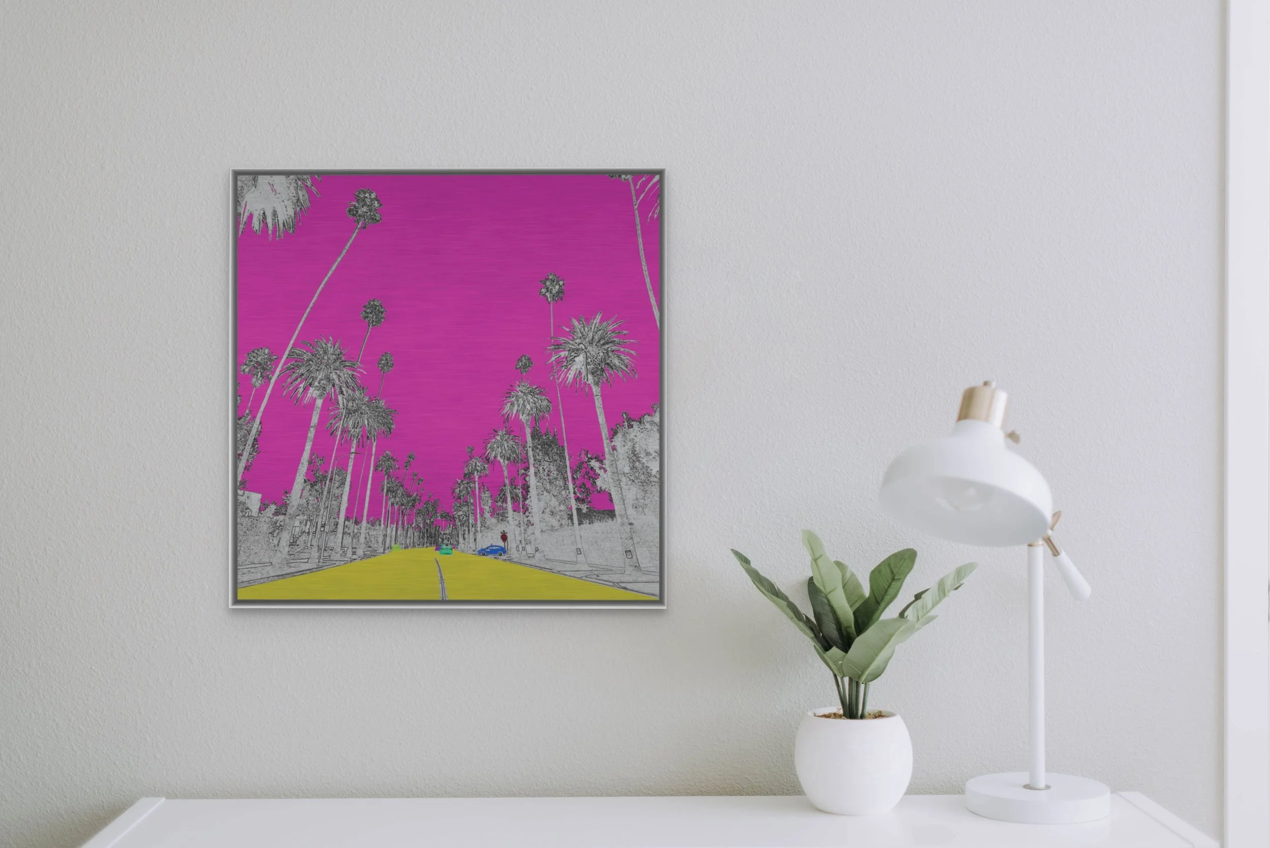 Marina City Towers (pop-art pink), brushed aluminium, box-framed, £650